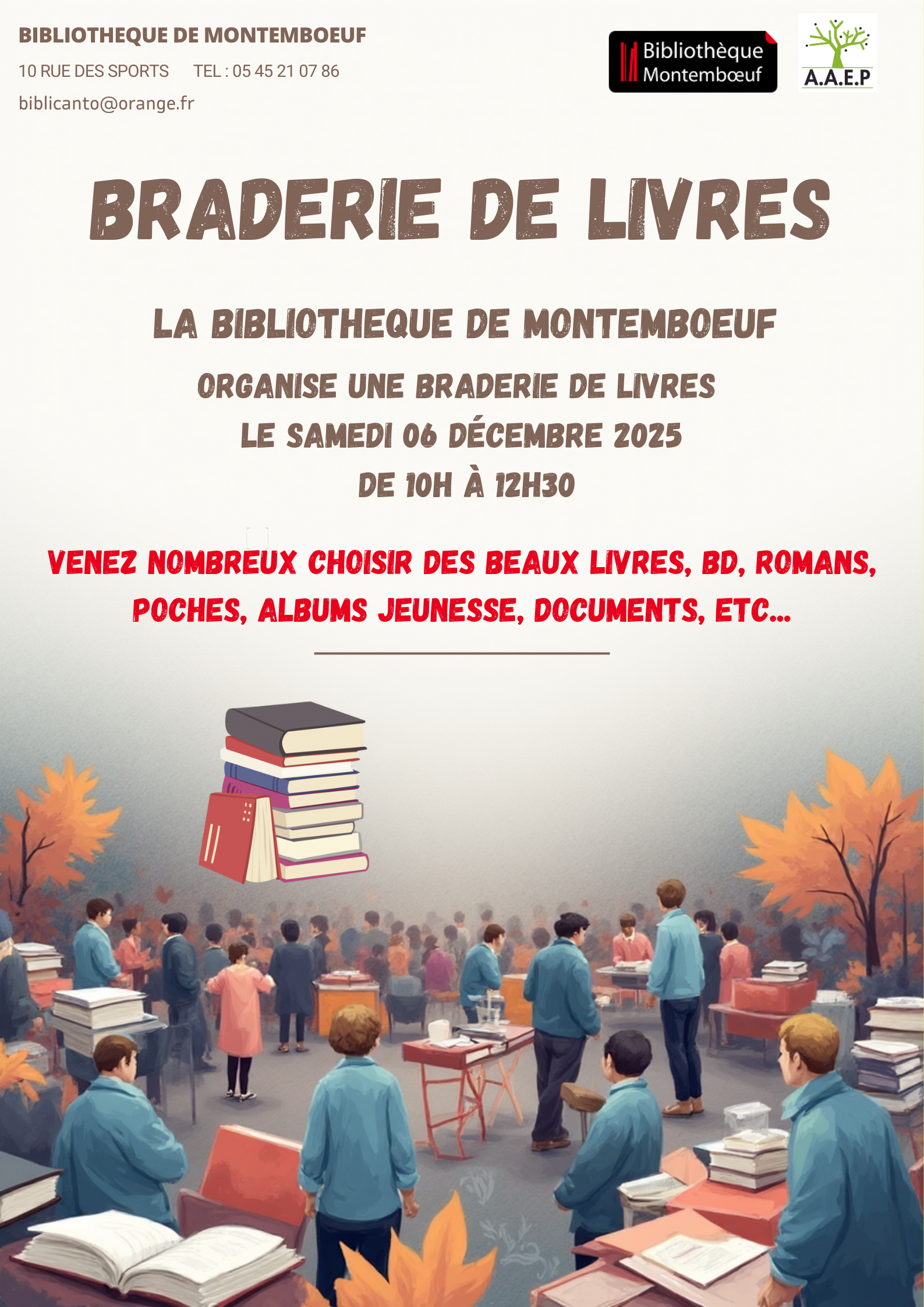 Comme chaque année, l'APE du RPI organise une vente de sapins. Vous trouverez ci-joint le bon de commande qui est à nous retourner avant le 17 novembre. Le retrait de vos commandes se fera le vendredi 5 décembre de 16h30 à 18h à Montemboeuf entre la poste et l'église.