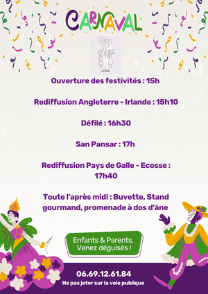 On vous attend nombreux pour un carnaval haut en couleurs 🎊💃🕺