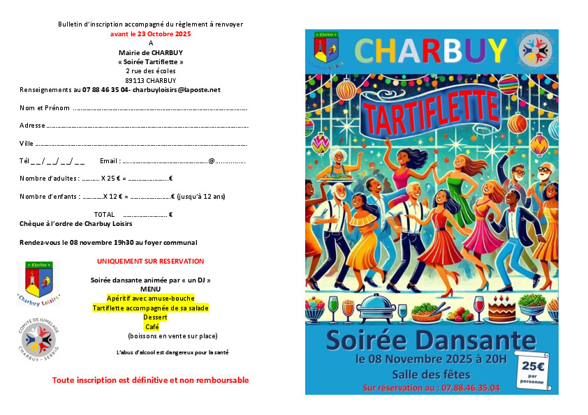 Mairie de Charbuy – « Soirée Tartiflette » – 2 rue des Écoles – 89113 Charbuy