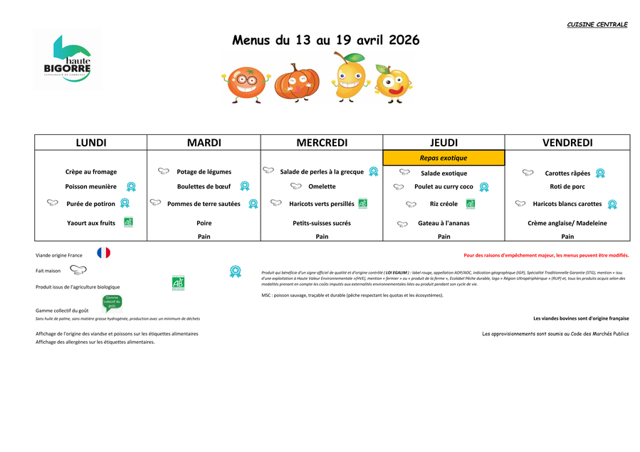 Menu cantine scolaire