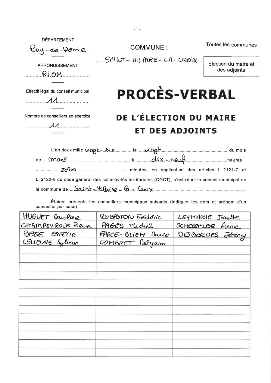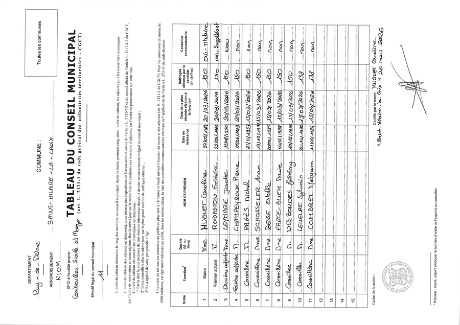 L'élection du Maire a eu lieu vendredi 20 mars 2026 à 19h.