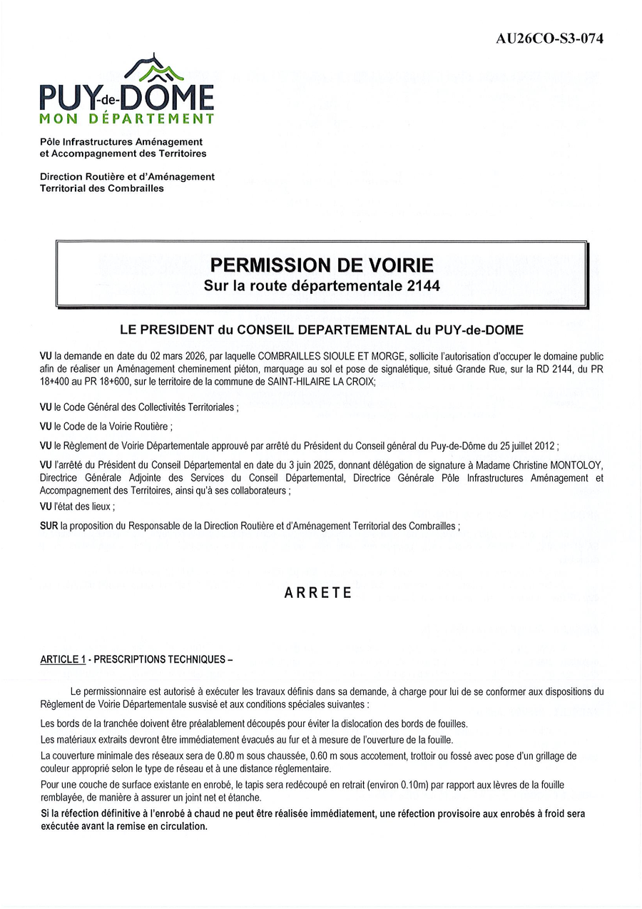 Mme HUGUET Caroline est également élue Conseillère Communautaire auprès de la Communauté de Communes Combrailles Sioule et Morge.