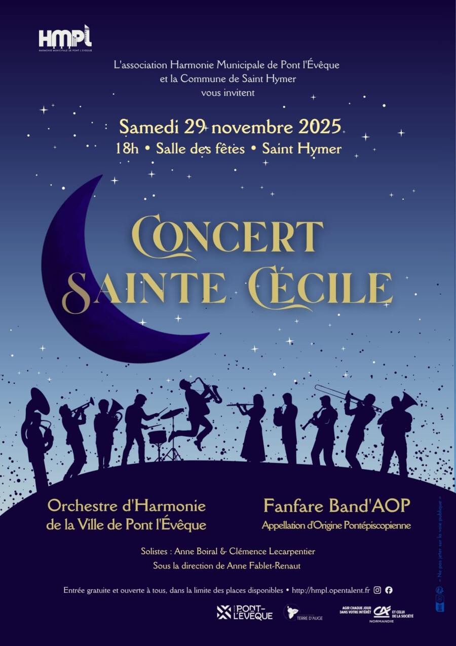 L'Harmonie Municipale de Pont l'Evêque et sa Fanfare Band'AOP vous invitent cordialement à leur concert de Sainte Cécile le samedi 29 novembre 2025 à 18h à la Salle des Fêtes de Saint-Hymer pour un moment convivial autour de la flûte traversière !