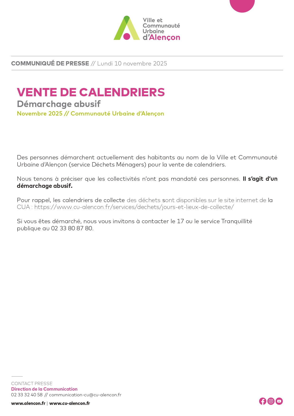 La Communauté Urbaine d'Alençon (CUA) nous alerte qu’une tentative de fraude par usurpation d’identité de la CUA est actuellement en cours.