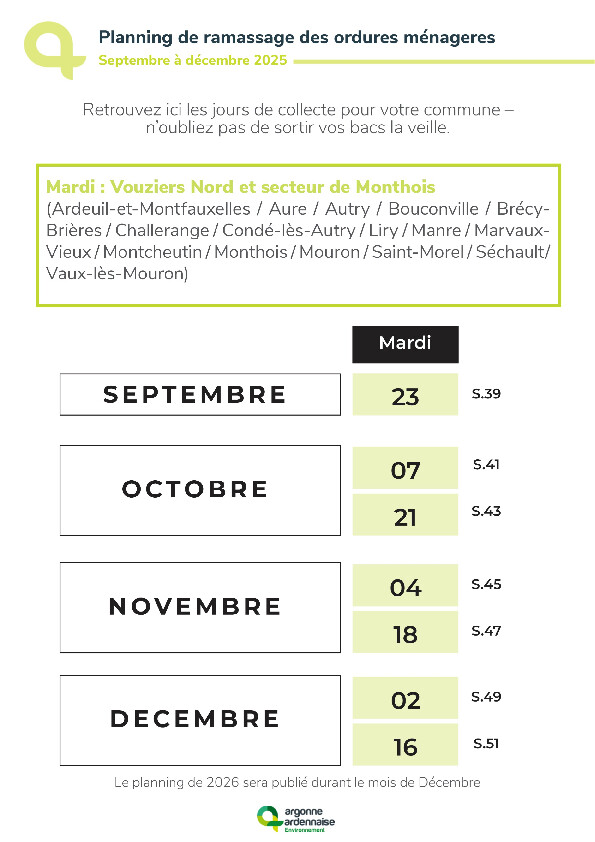 En 2025, les horaires des déchèteries de Vouziers et Challerange changent :