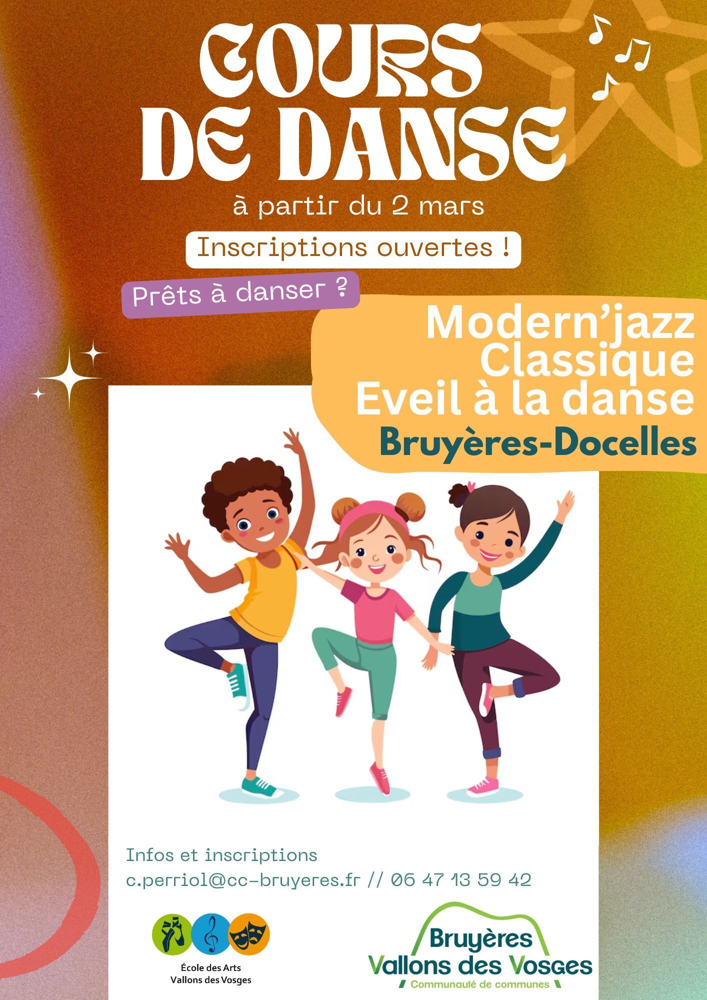 Merci de prendre connaissance de l'information ci-dessous de l'école des Arts, Vallons des Vosges sur les cours de danse classique, modern'jazz et éveil à la danse depuis le 2 mars 2026