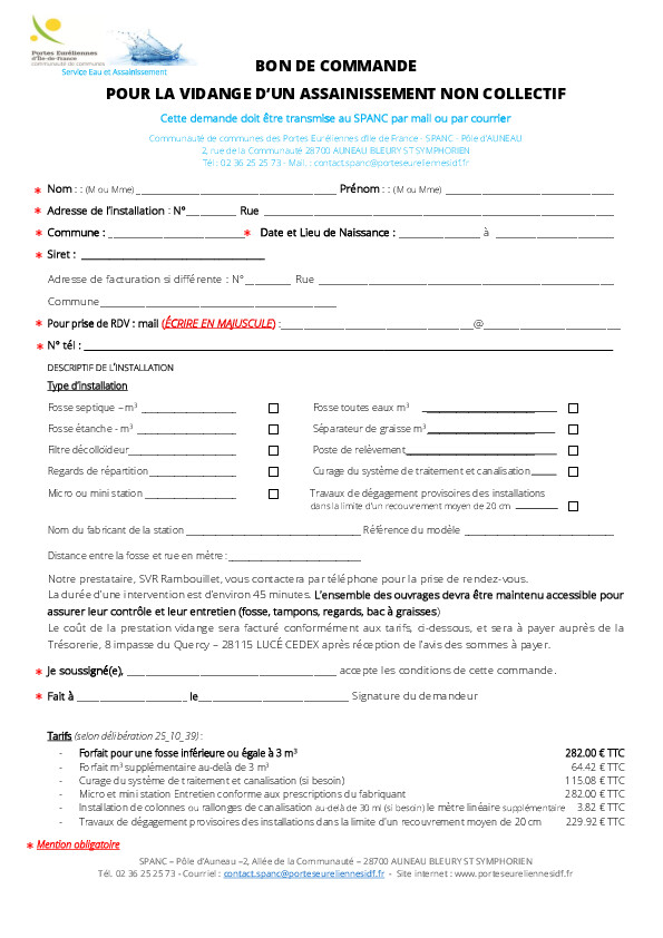 Le service SPANC vous informe que les demandes de vidanges peuvent être déposées auprès du service (par mail ou par courrier)