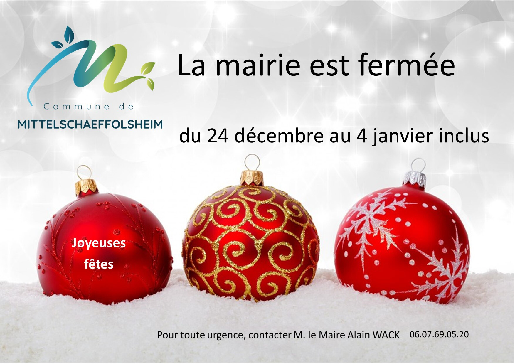 Le secrétariat de la mairie est fermé du mercredi 24 décembre au 4 janvier.