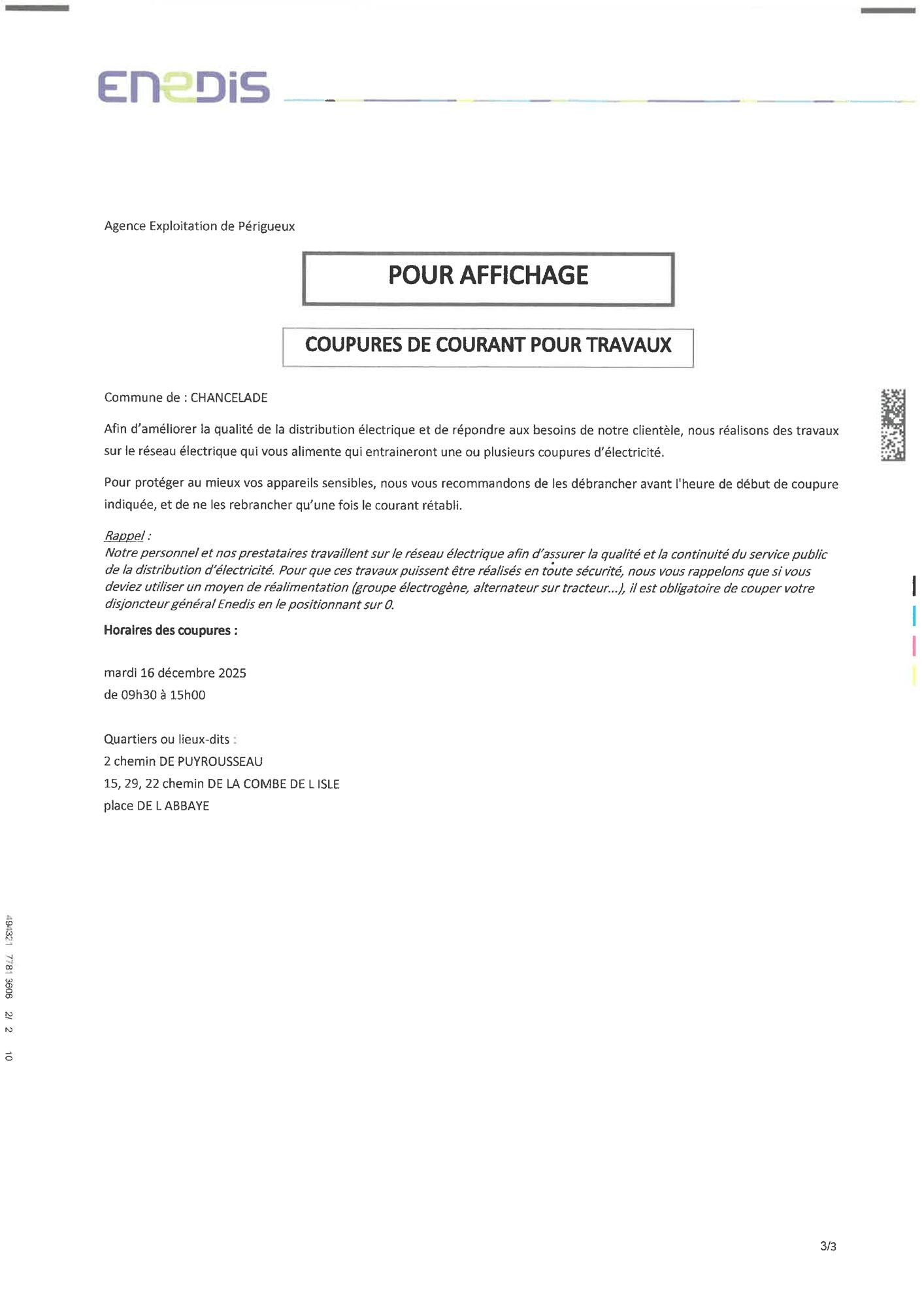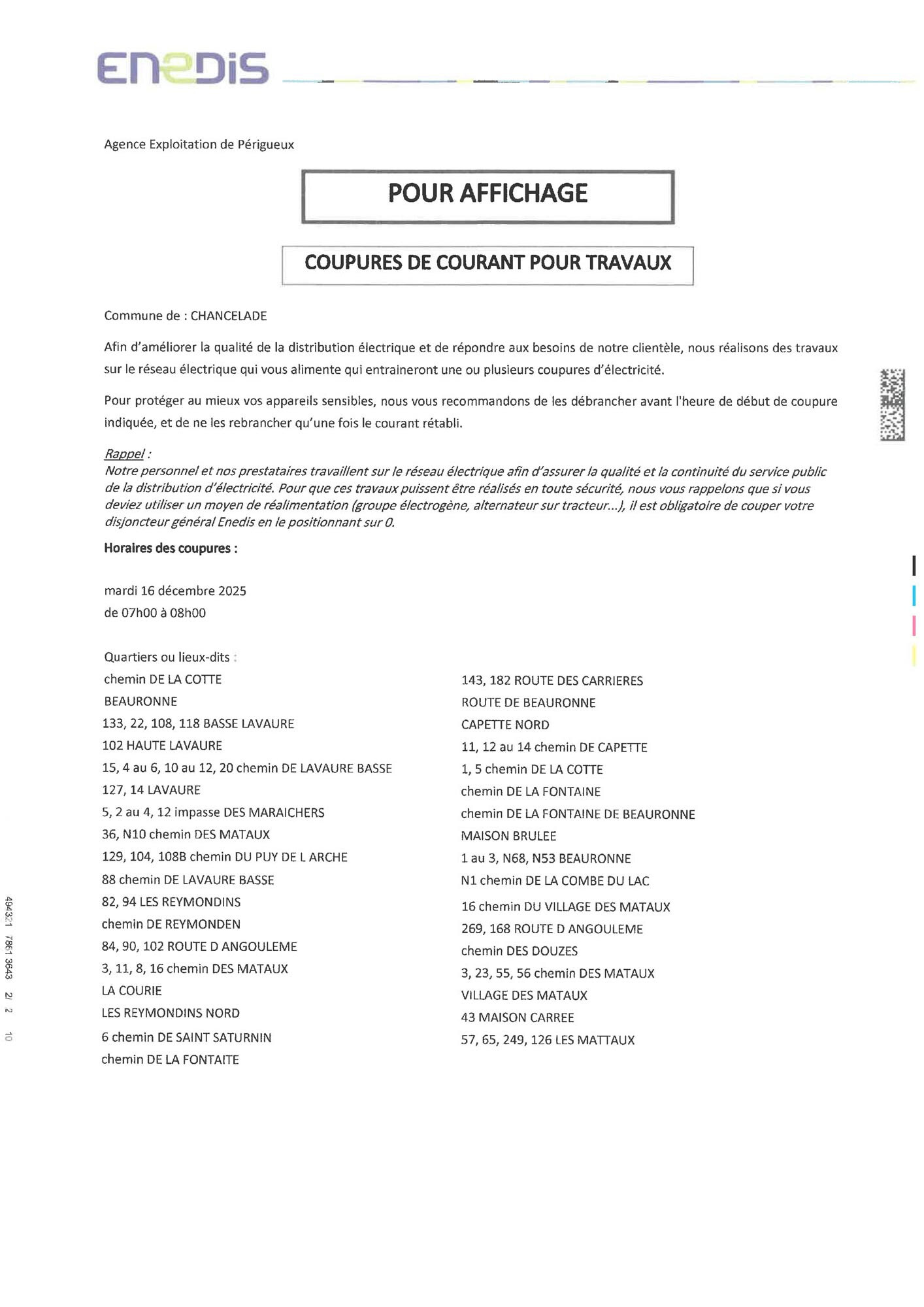 des travaux seront réalisés sur la commune pour enfouissement du réseau ENEDIS et des travaux sur une ligne à haute tension dans les quartiers suivants :