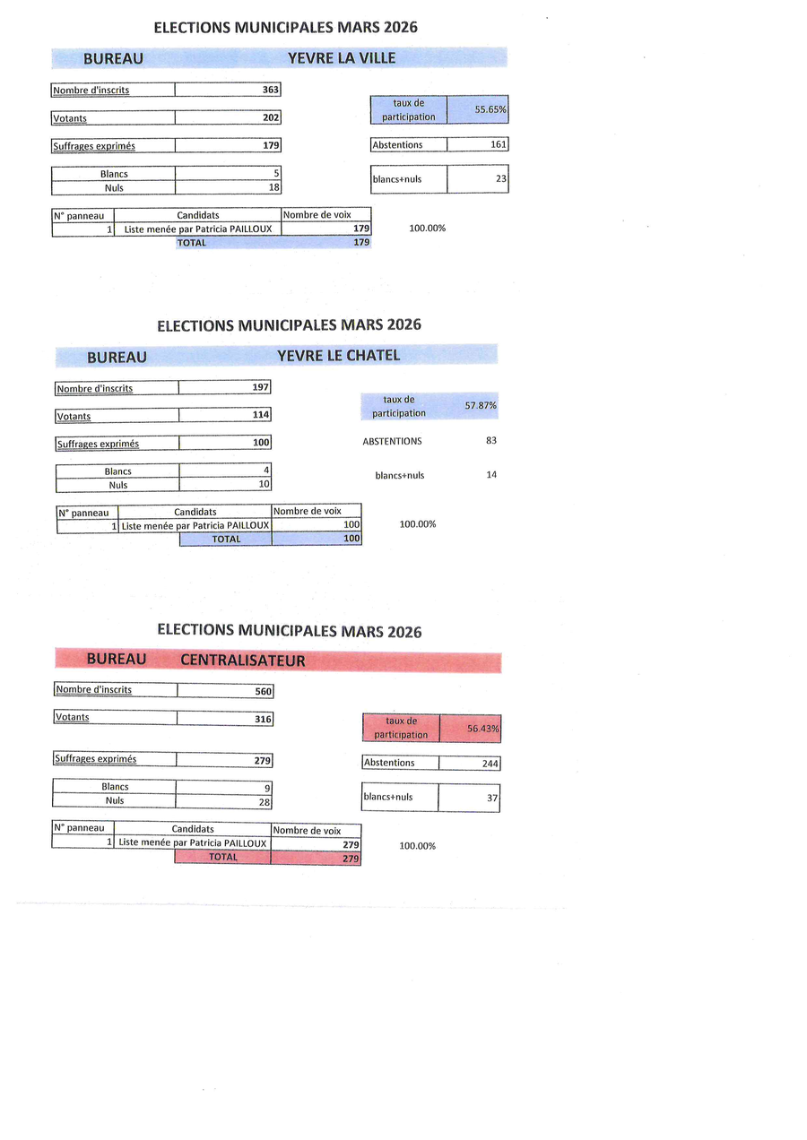 Le conseil municipal vous remercie pour votre participation et votre confiance