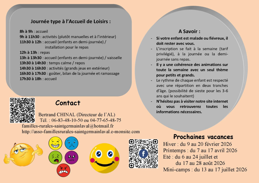 pour les périodes de toutes les vacances scolaires ( Sauf Noël)