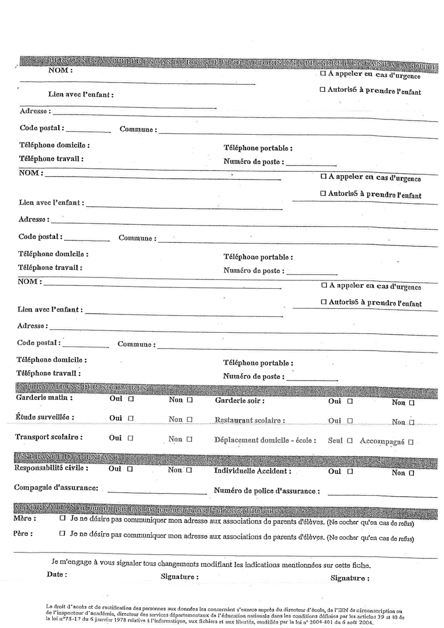-Le formulaire signé par les 2 parents ci-joint remplit.
