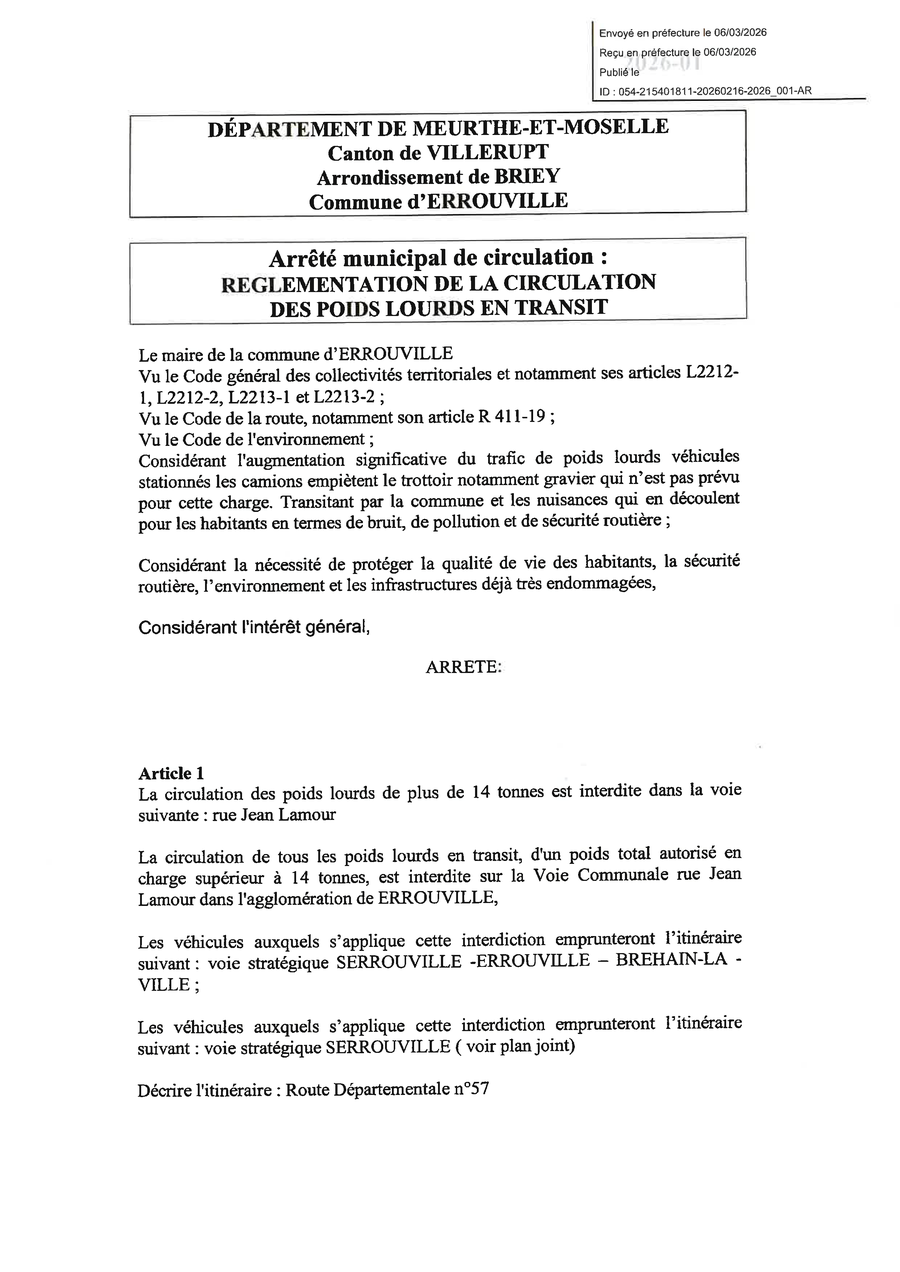 INTERDICTION de circuler sur la voie publique ainsi que dans la forêt d'ERROUVILLE
