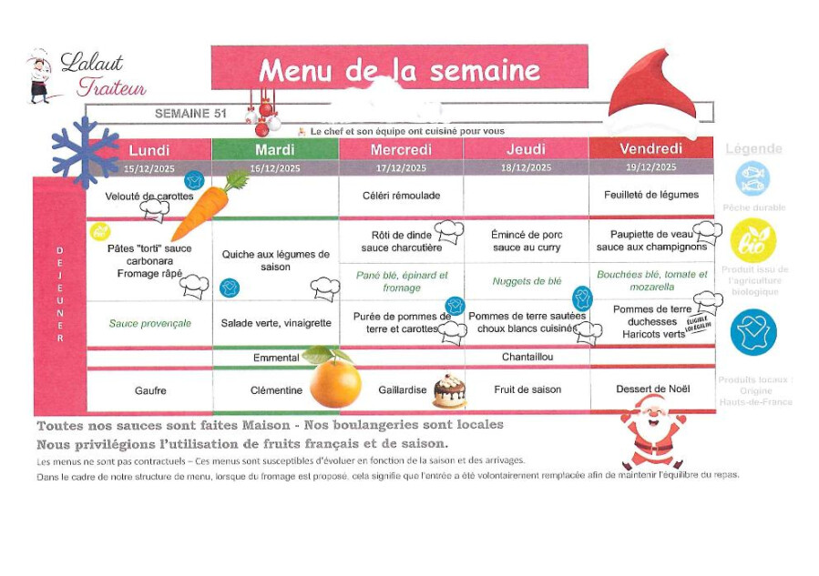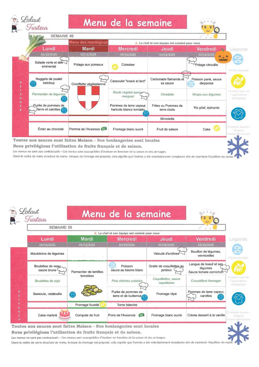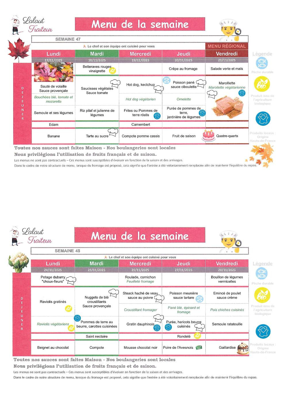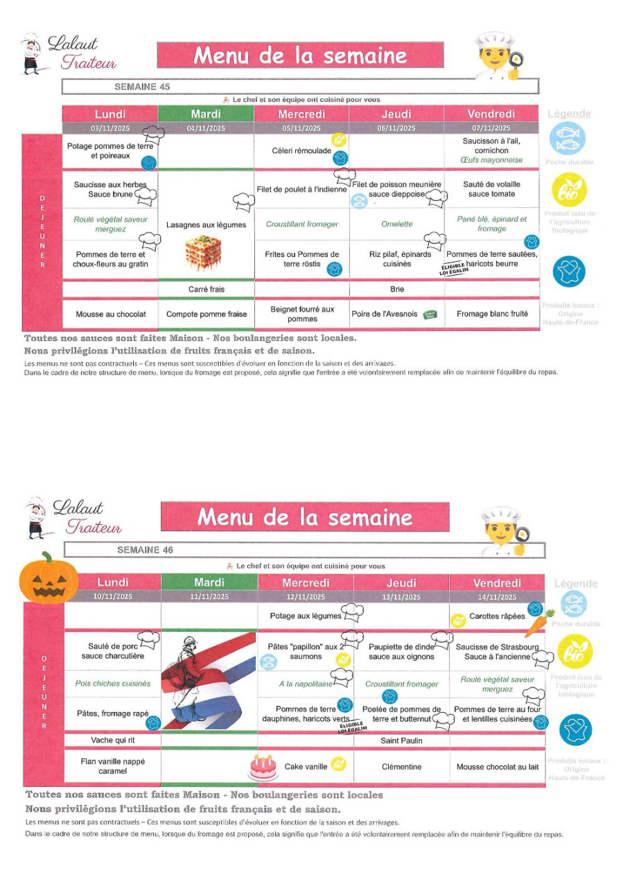 Pensez à inscrire votre enfant pour les repas de la rentrée de novembre, notamment celui du lundi 3 novembre,