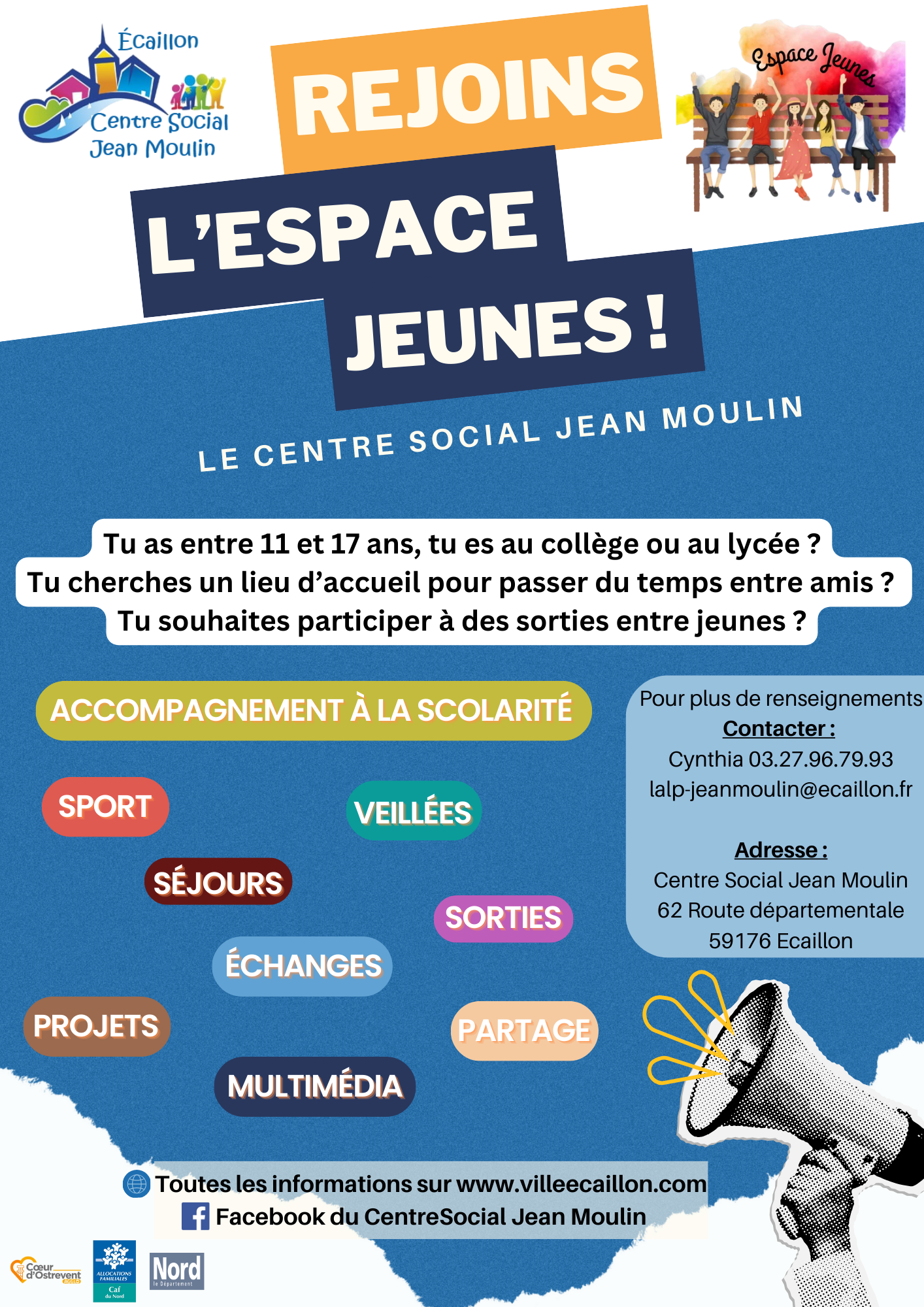 📞 N'hésitez pas à contacter Cynthia, la responsable de l'Espace Jeunes au 03.27.96.79.93