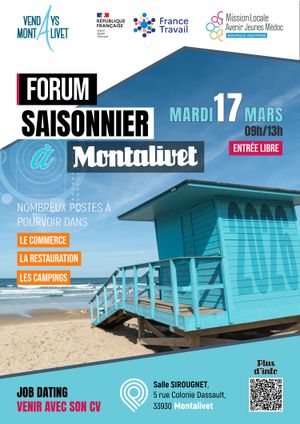 Forum Emplois Saisonniers à Montalivet le mardi 17 mars à la salle SIROUGNET.