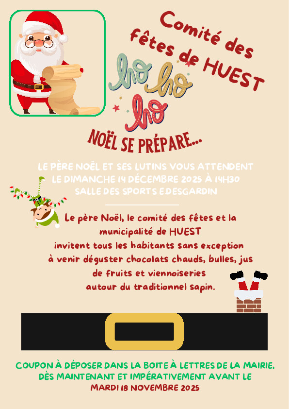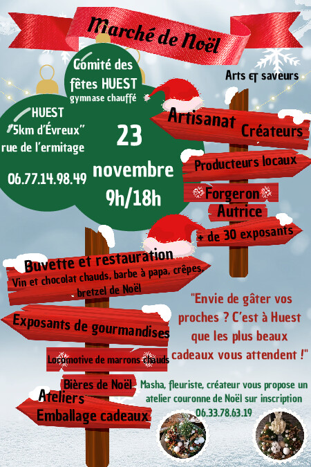 💰 Tarif : 35 € (tout inclus) 📅 Date : dimanche 23 novembre 📍 Lieu : Marché de Noël de Huest 📞 Inscription obligatoire au 06.33.78.63.19