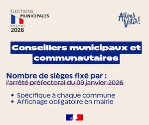 Le nombre de sièges à pourvoir est fixé par arrêté préfectoral du 9 janvier 2026, spécifique à chaque commune et affiché en mairie.
