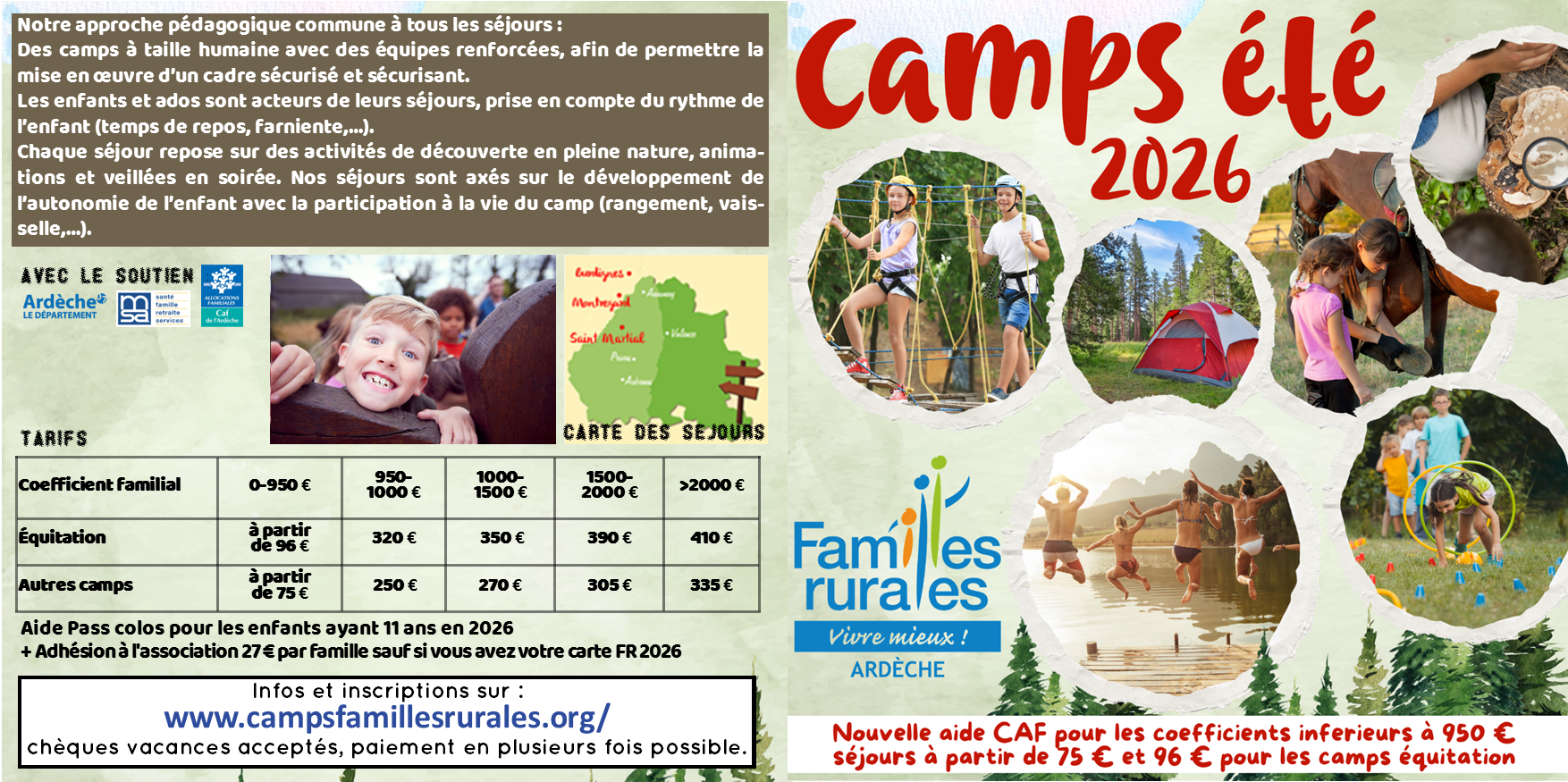 Familles Rurales de l’Ardèche organise depuis plus de dix ans des séjours de vacances déclarés auprès de la Direction départementale de la Cohésion sociale et de la Protection des populations