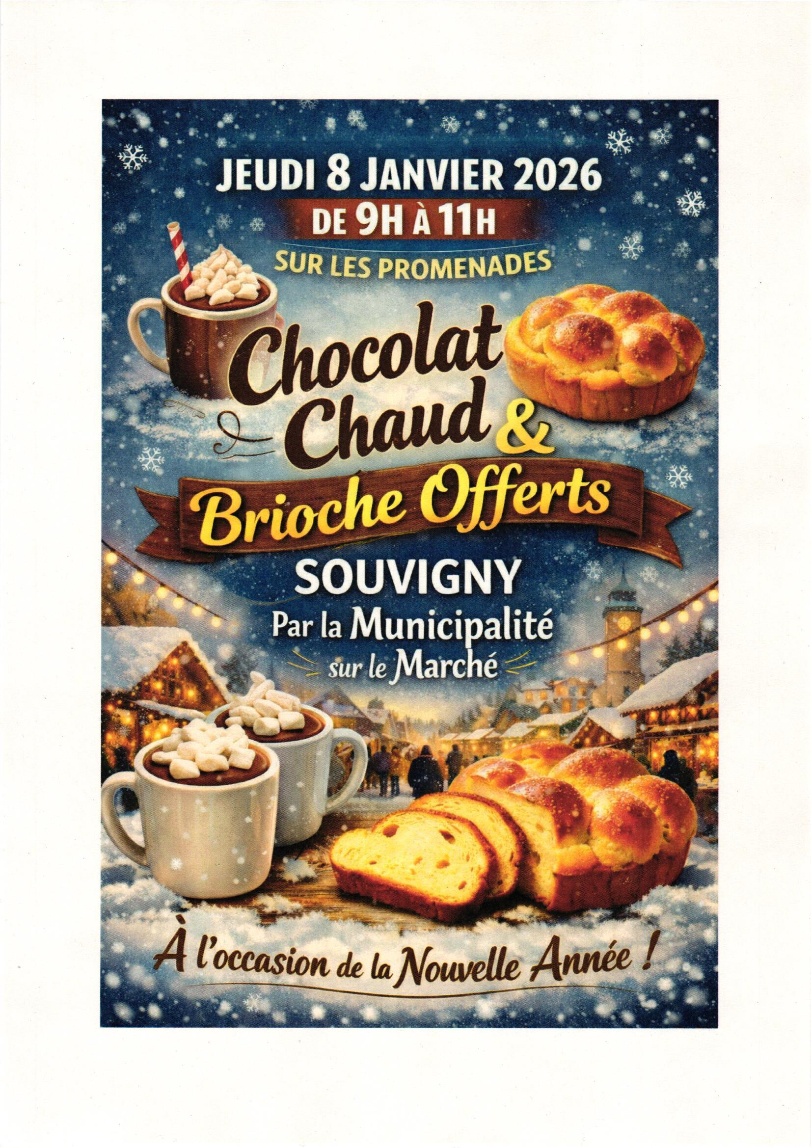 LE CHOCOLAT CHAUD & BRIOCHE OFFERTS PAR LA MUNICIPALITÉ PRÉVU SUR LES PROMENADES DU MACHÉ LE JEUDI 08 JANVIER 2026 EST ANNULÉ.