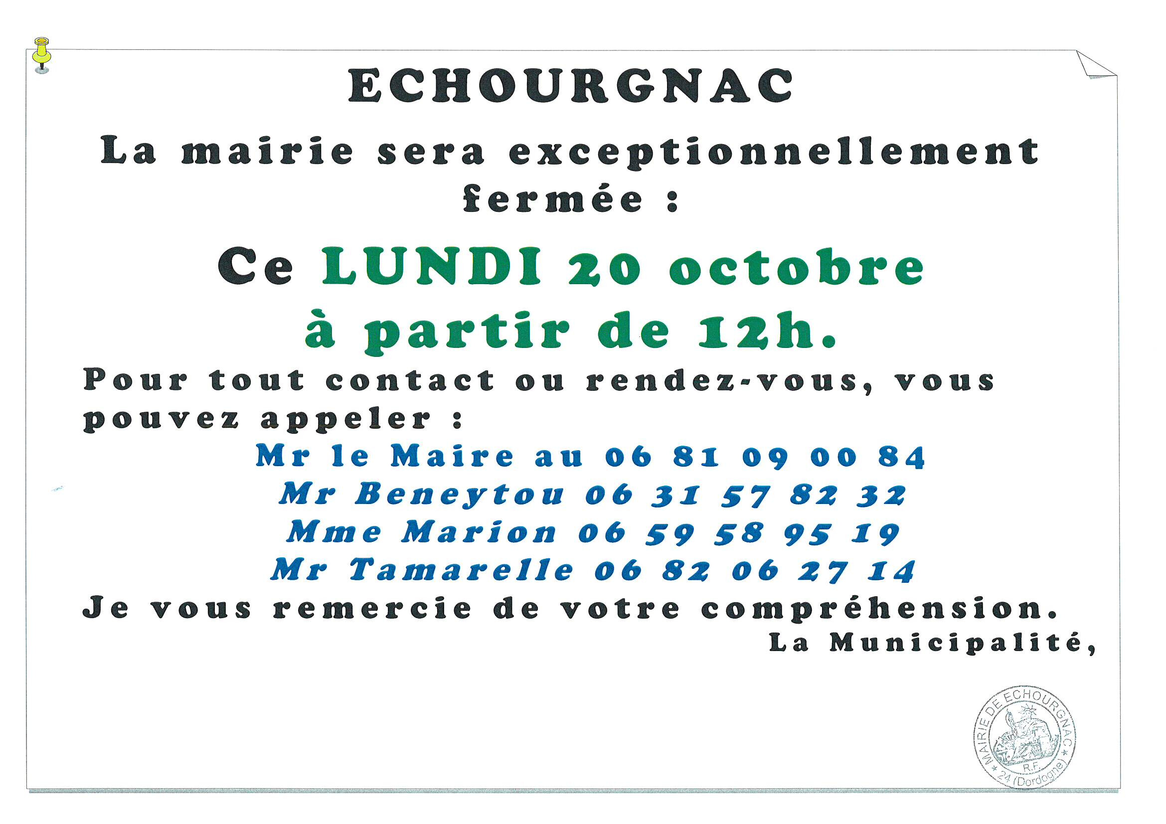 Pour tout renseignement ou demande de Rendez-vous : vous pouvez contacter Monsieur le Maire