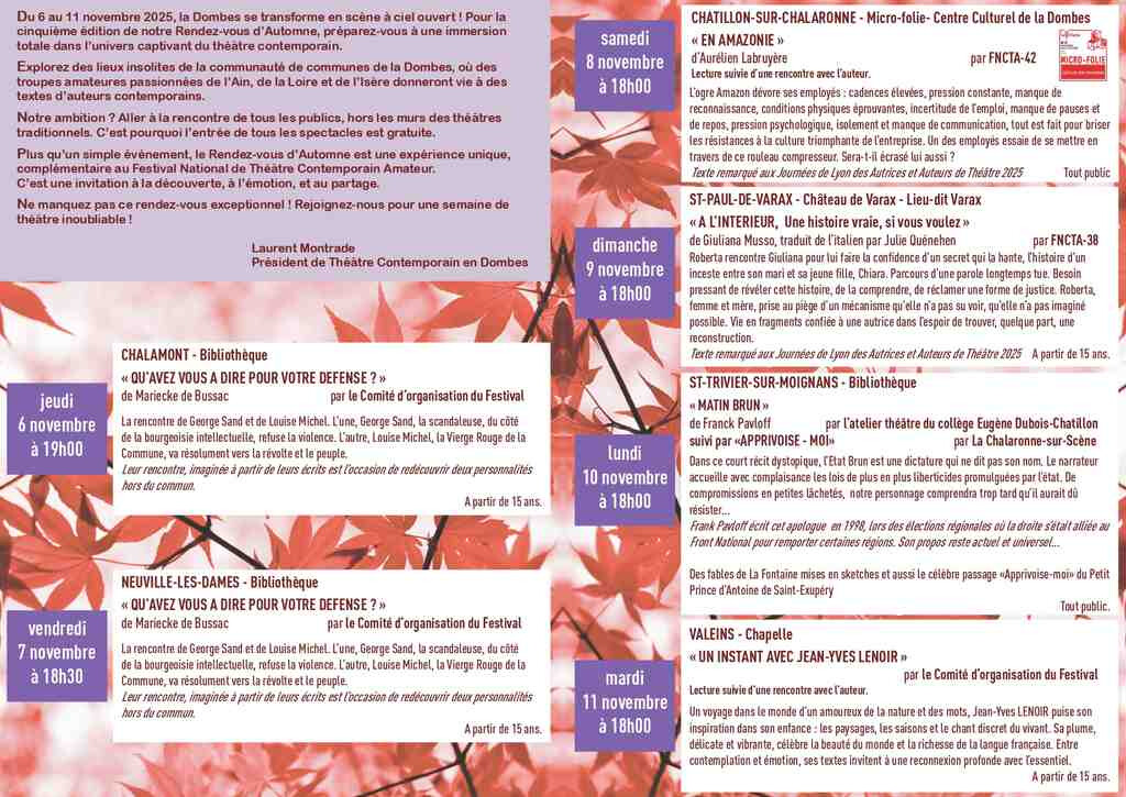 Cinquième Rendez-Vous d’Automne du Festival National de Théâtre Contemporain Amateur de la Dombes