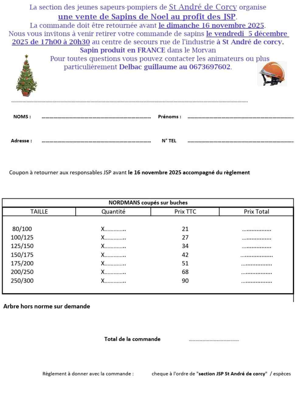 La section des Jeunes Sapeurs-Pompiers de Saint-André-de-Corcy organise une vente de Sapins de Noël au profit des JSP.