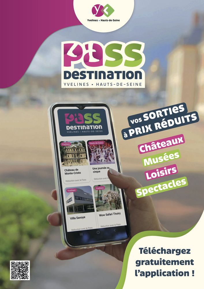 Le PASS DESTINATION est une appli gratuite permettant de bénéficier de tarifs réduits et bons plans dans plus de 100 sites touristiques des Yvelines et Hauts-de-Seine