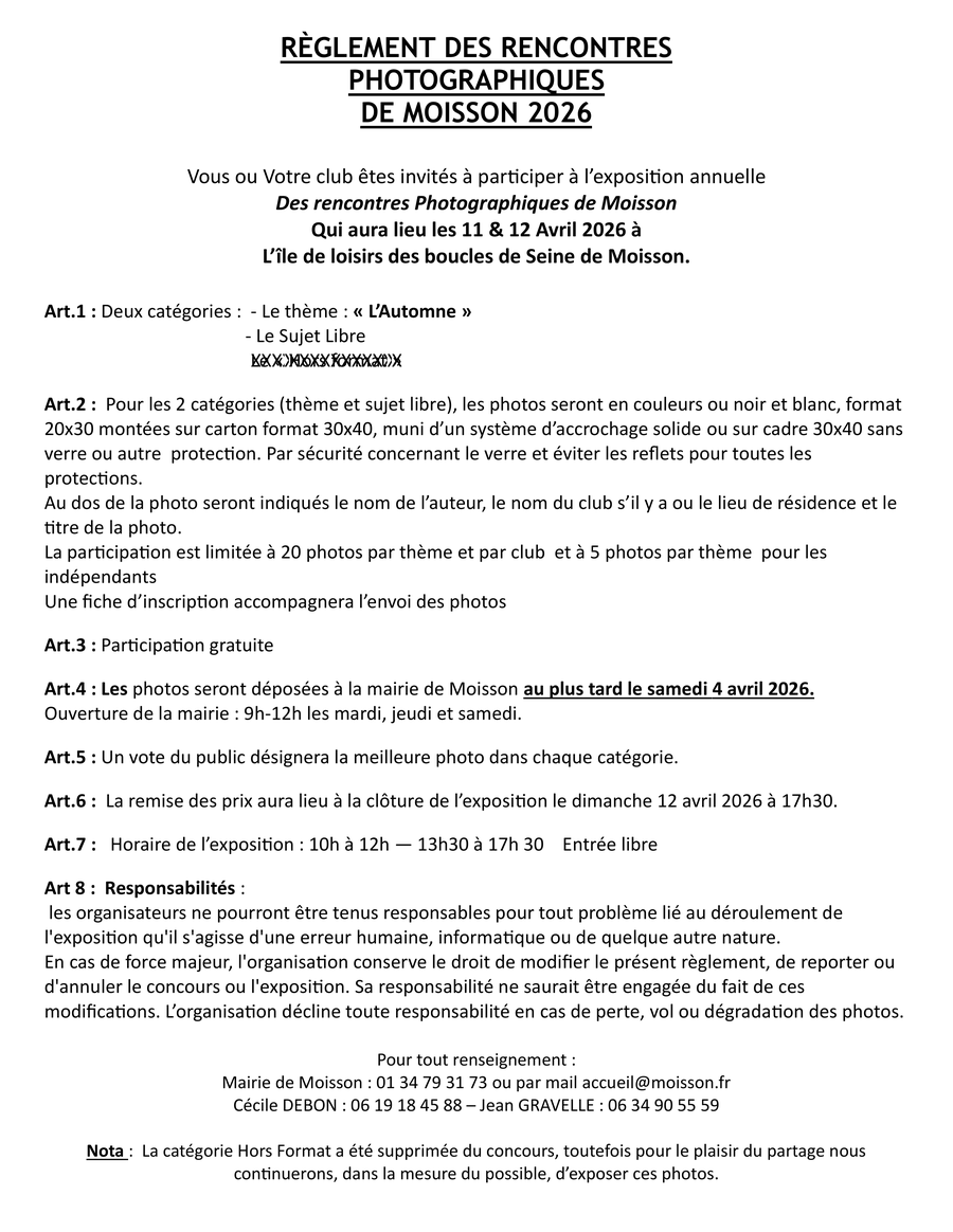 Notre concours des rencontres photographiques se déroule les 11 et 12 avril prochain !