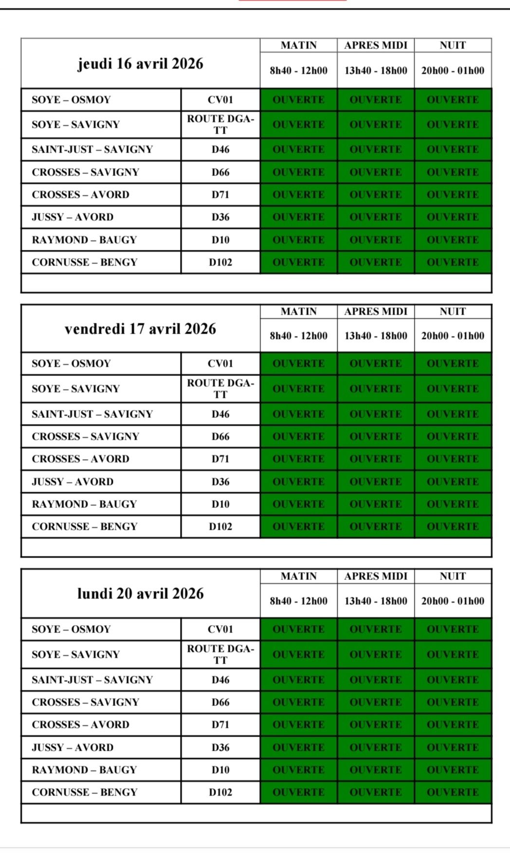 Pour raison de congés, le secrétariat de mairie ainsi que l'agence postale sont fermés du mercredi 15 au mercredi 22 avril inclus.