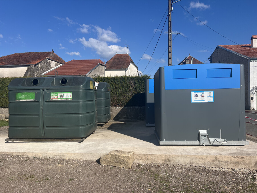 Verres (bouteilles et bocaux…) à déposer dans les containers à verre.