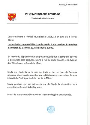 La circulation sera modifiée rue du stade à compter du 9 février.