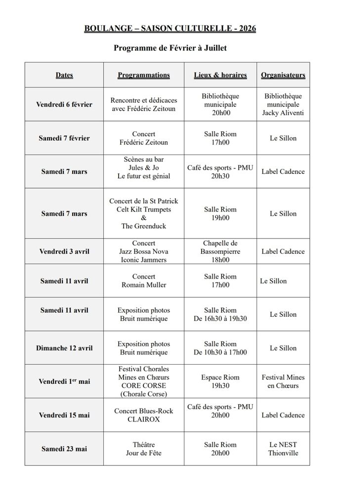 Bulletin d'inscription à retourner en mairie avant le 30//01/2026.