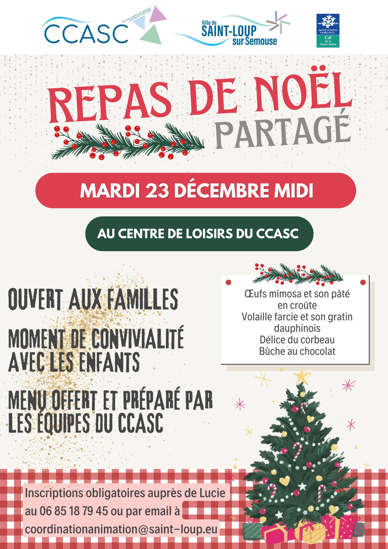 auprès de Lucie au 06 85 18 79 45 ou par email à coordinationanimation@saint-loup.eu