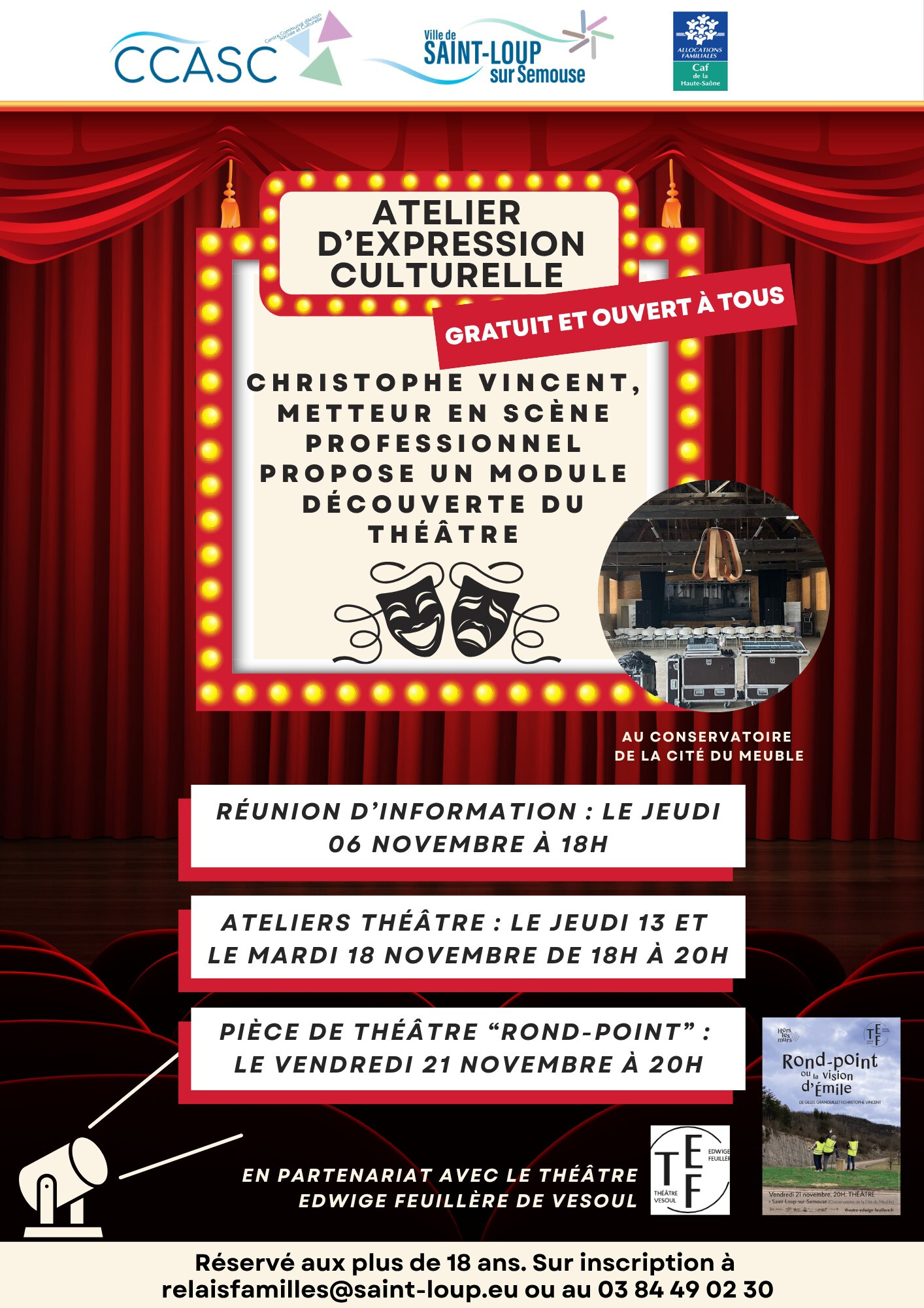 Participez à un atelier d’expression culturelle gratuit et ouvert à tous, en partenariat avec le Théâtre Edwige Feuillère de Vesoul !