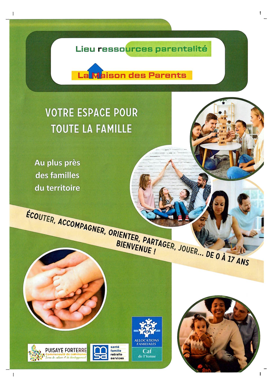 La communauté de communes, la MSA, et la CAF de l'Yonne mettent à disposition des familles un lieu de ressource parentalité.