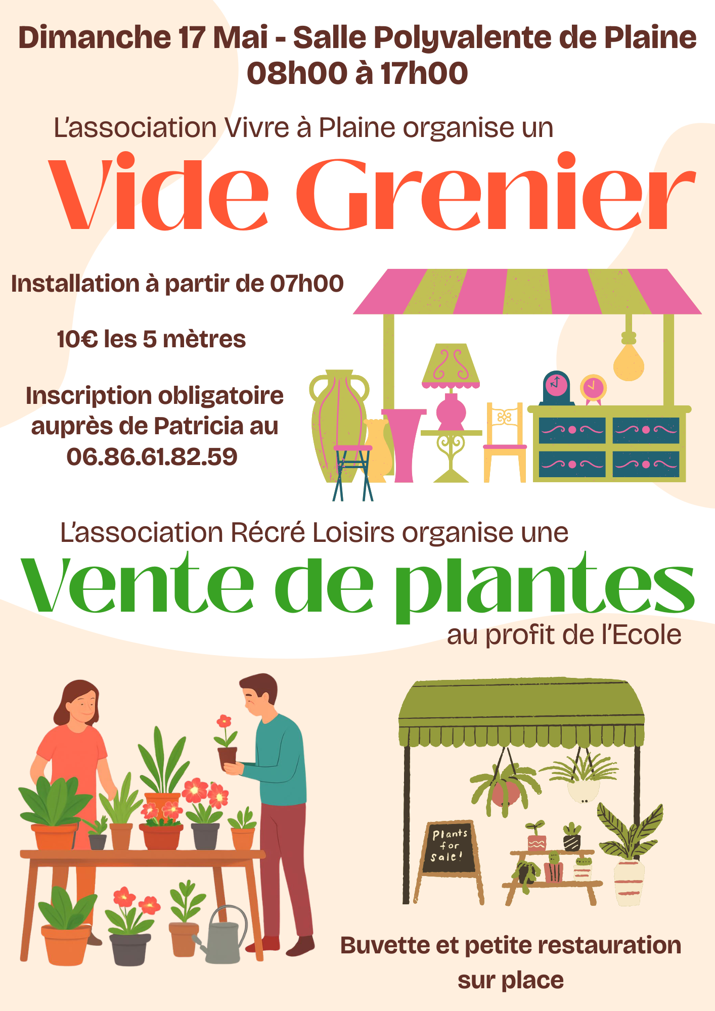 Et pour les amoureux de nature 🌱, profitez aussi d’une vente de plantes : fleurs, boutures et verdure pour embellir votre maison ou votre jardin.