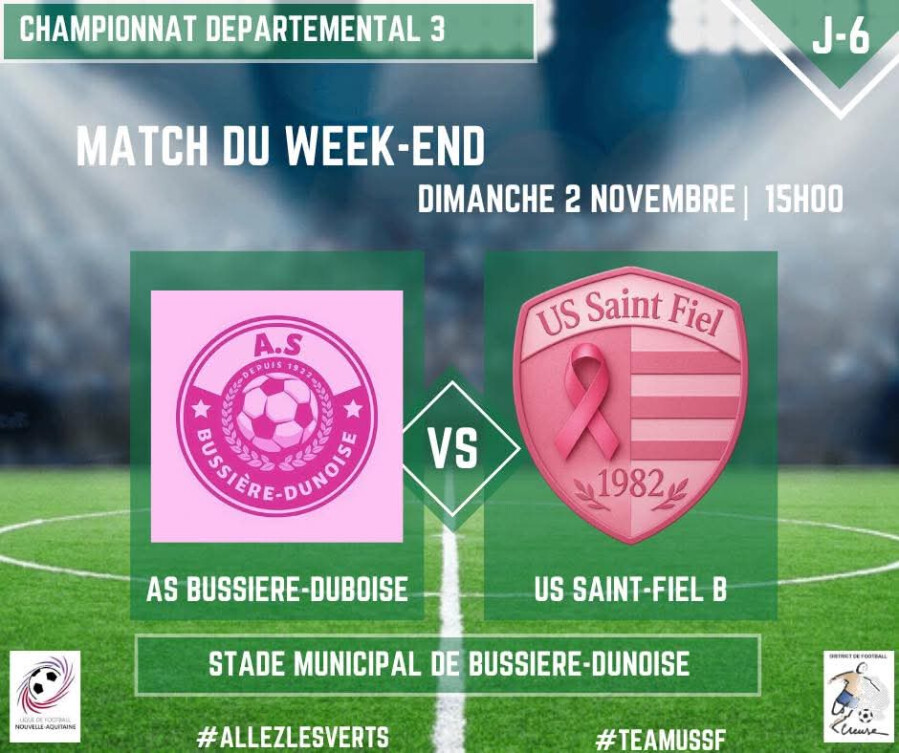 🔹Départemental 3 : AS Bussière-Dunoise 🆚 US Saint-Fiel B - 15h00 au Stade Municipal de Bussière-Dunoise