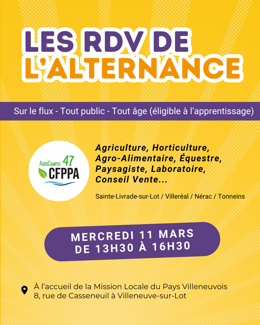 Tous les mois, la Mission Locale du Pays Villeneuvois organise une rencontre avec un centre de formations autour de l'apprentissage et de l'alternance.