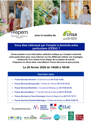 Le Centre départemental de santé (Conseil départemental du Puy-de-Dôme), en partenariat avec le CLIC Senior Montagne, la CARSAT Auvergne, la Commission des Financeurs et les mairies de La Bourboule et Larodde, vous proposent :