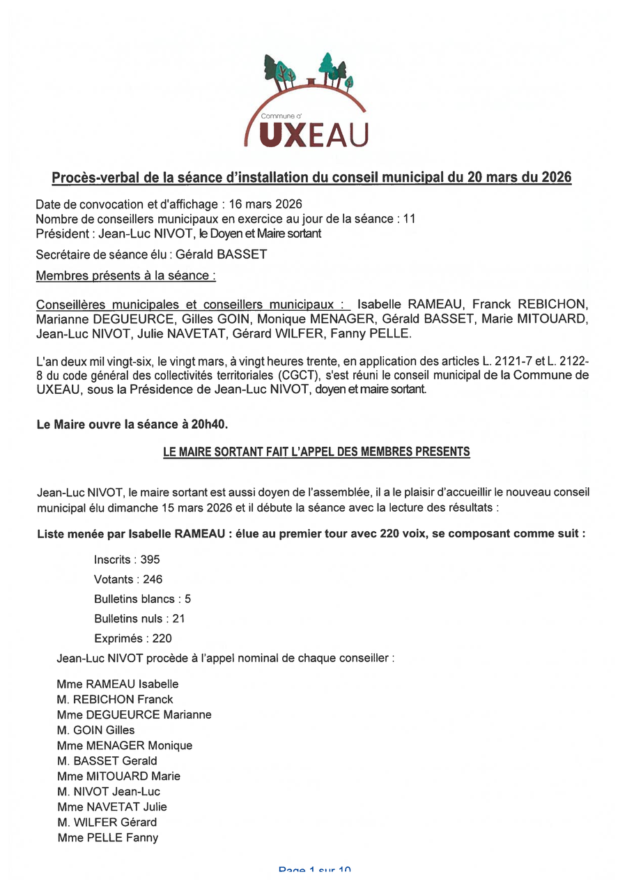 Vendredi 20 mars, le nouveau conseil municipal a été installé .