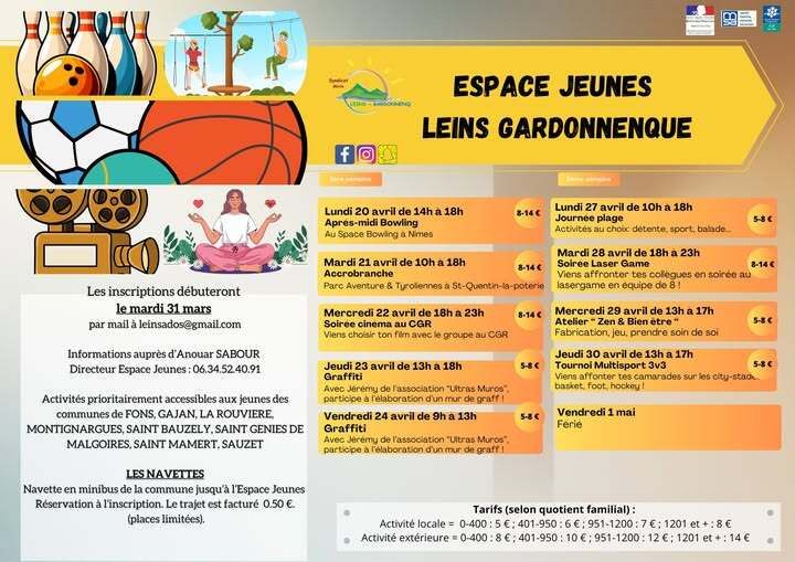 Toutes les informations, fiches d'inscription, planning, tarifs, sont disponibles sur notre page internet :