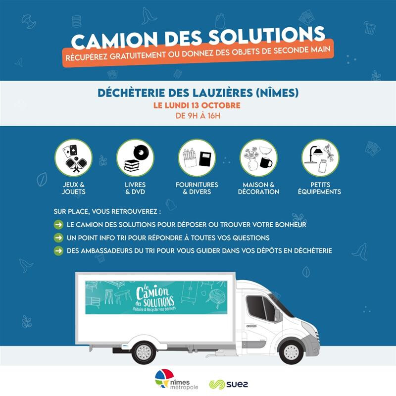 Et grâce à la présence exceptionnelle du « Camion des solutions » sur la déchèterie des Lauzières, profitez-en pour en découvrir davantage sur le réemploi !