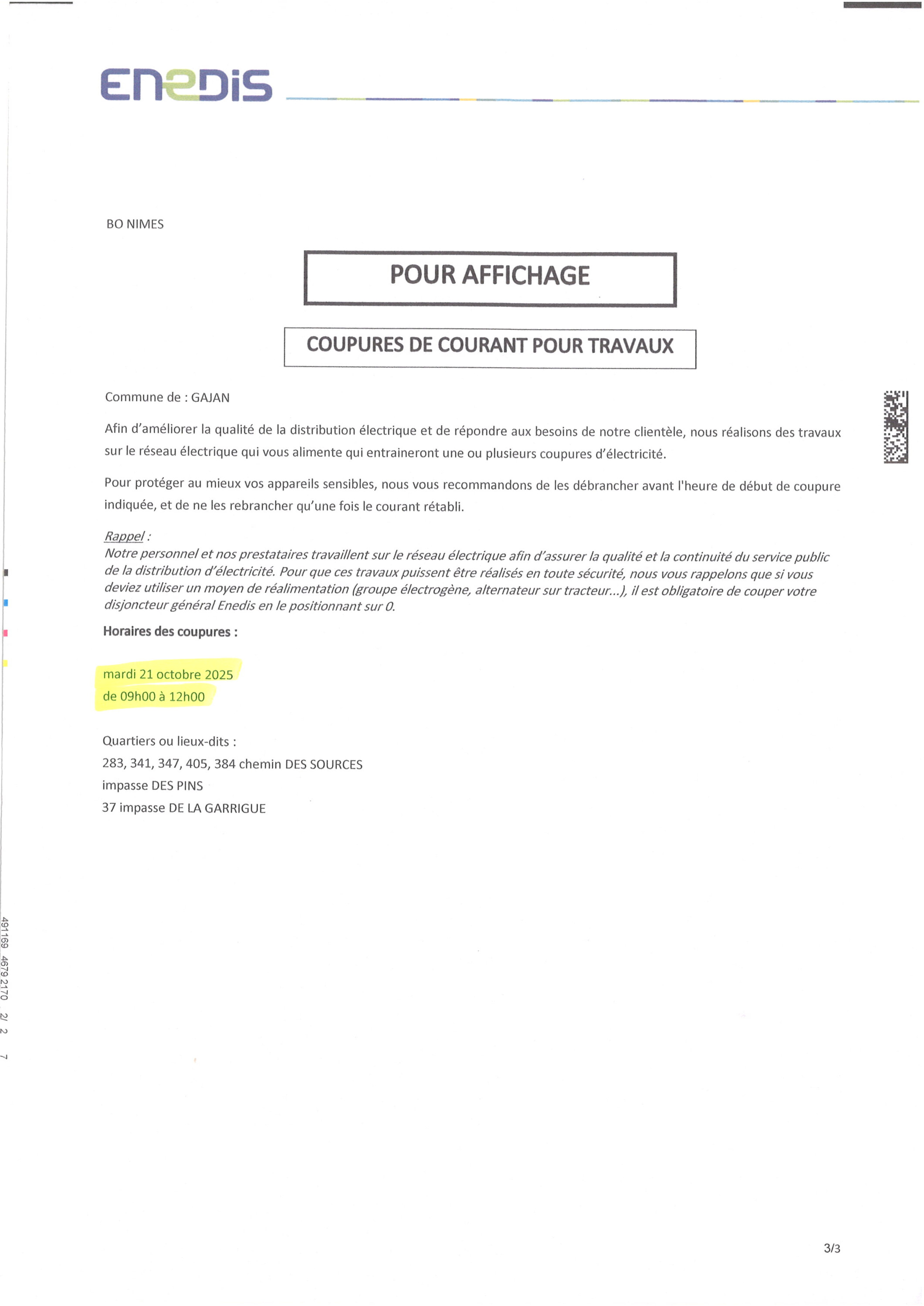 en raison d'une opération de broyage qui aura lieu le lundi 13 octobre sur le site.