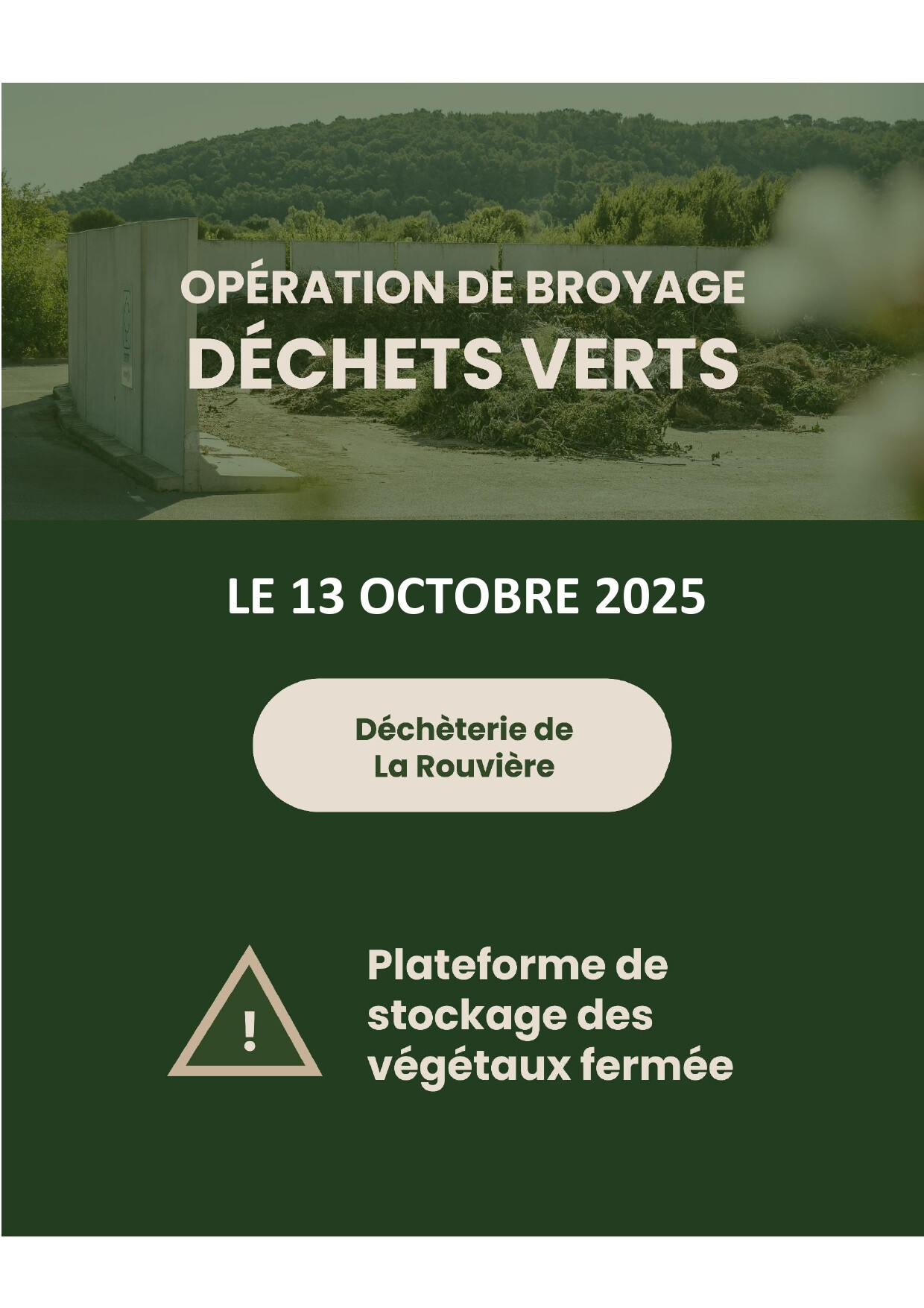 la mise à disposition de compost sur la déchèterie de LA ROUVIERE est reportée au