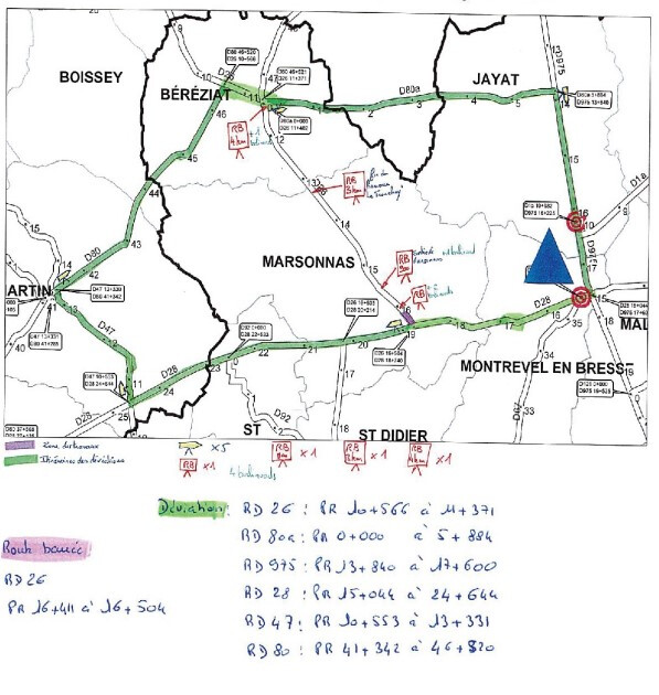 par RD26, RD80A, RD975, RD28, RD47 et RD80 (voir le plan)