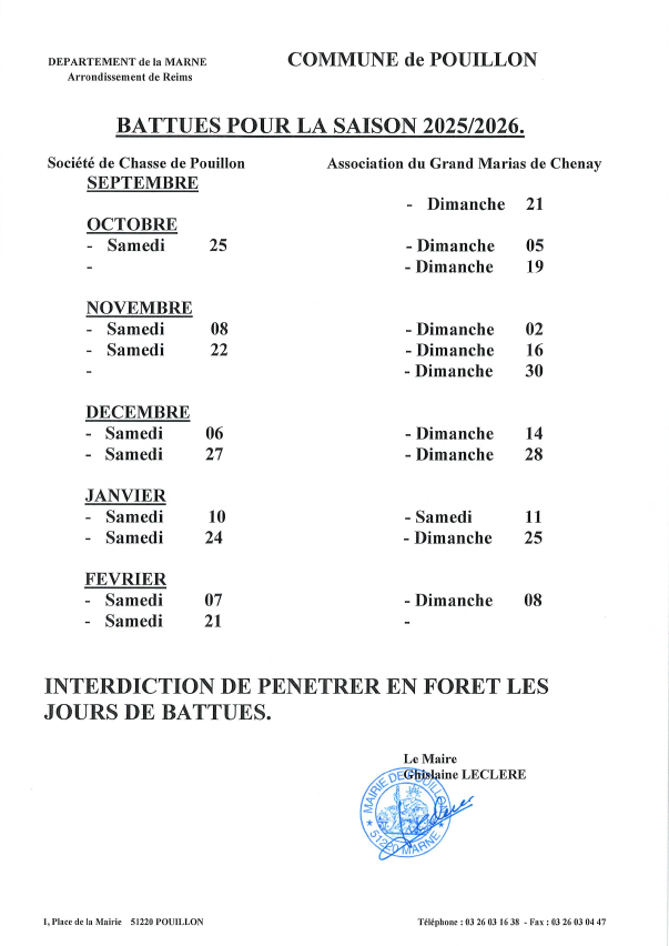 Pour info le président et le bureau de la société de chasse de pouillon a changé :