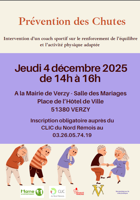 Le CLIC du Nord Rémois en partenariat avec la Mutualité Française, le Département de la Marne et la commune de Verzy organise une action collective Prévention des chutes pour les seniors :