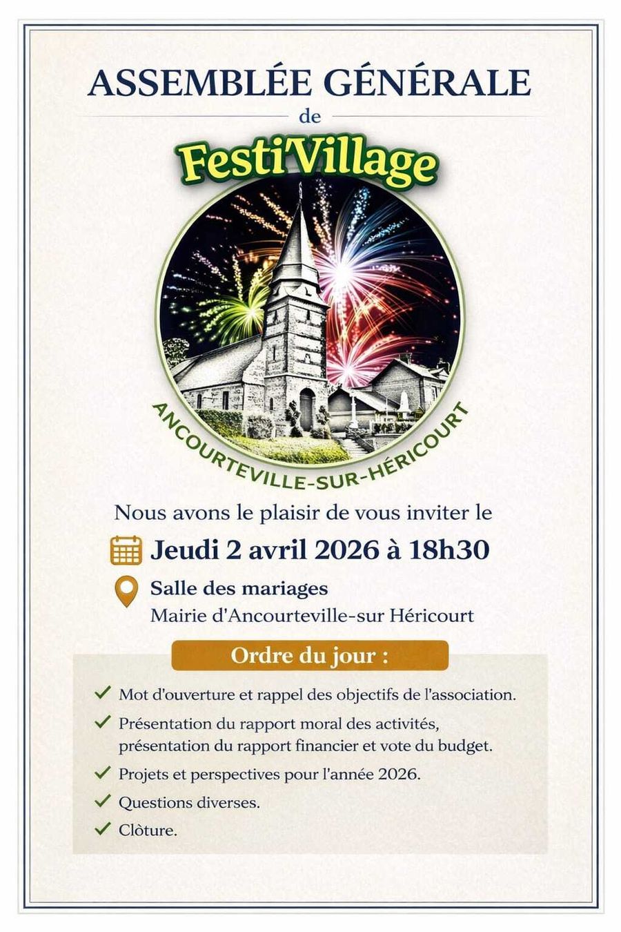 Veuillez trouver ci-joint le flyer pour l'assemblée générale de l'association Festi'Village.