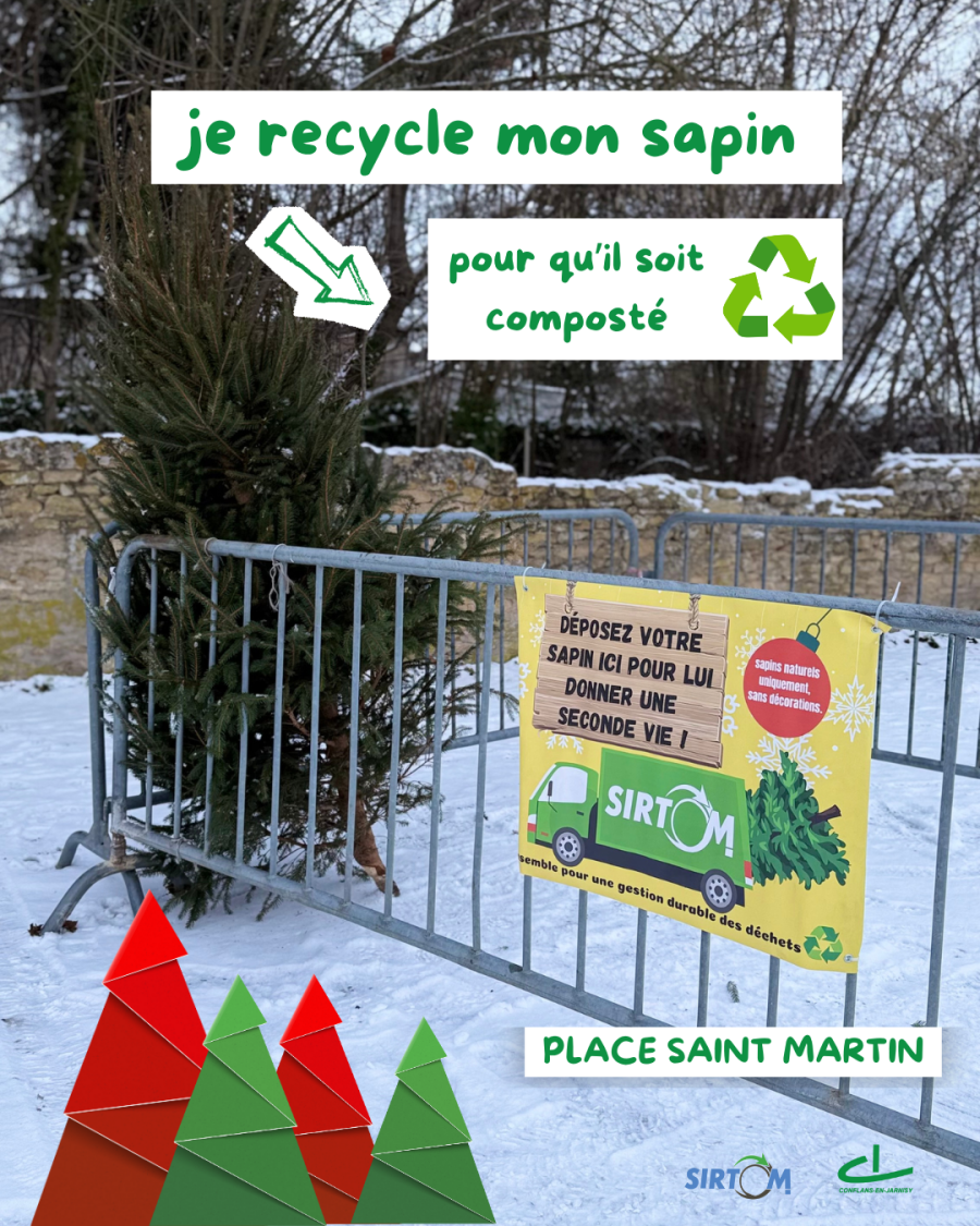 ♻️ Les sapins seront ensuite broyés et recyclés en paillage, utile pour les espaces verts.